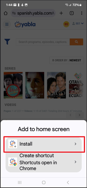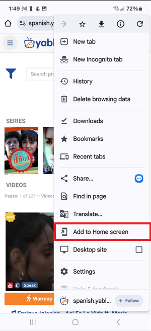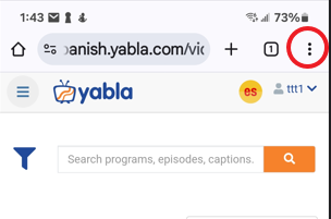 1. Using the Chrome browser on your Android device go to the Yabla website, www.yabla.com.