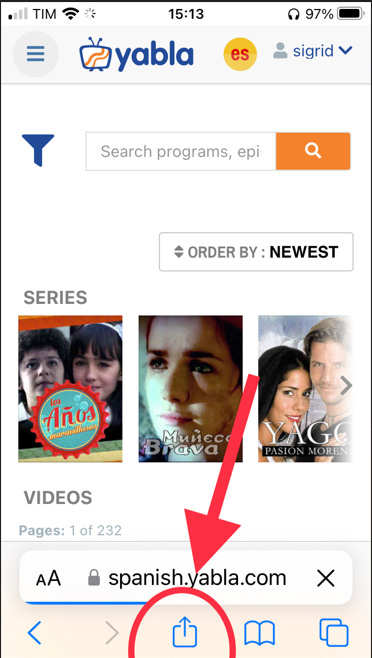 1. On your iPhone or iPad go to the Yabla website, www.yabla.com using the Safari browser.